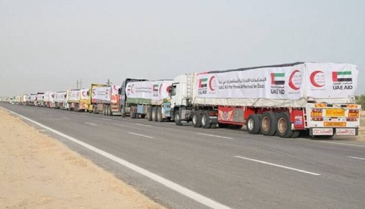 وأرسلت الإمارات المساعدات الإغاثية إلى القطاع عبر 212 طائرة، و2 من سفن الشحن، و521 شاحنة حملت مساعدات متنوعة، شملت 21 ألف طن من المساعدات الغذائية، والصحية، ومواد الإيواء بالتعاون مع المنظمات الدولية وفي مقدمتها برنامج الأغذية العالمي التابع لهيئة الأمم المتحدة.