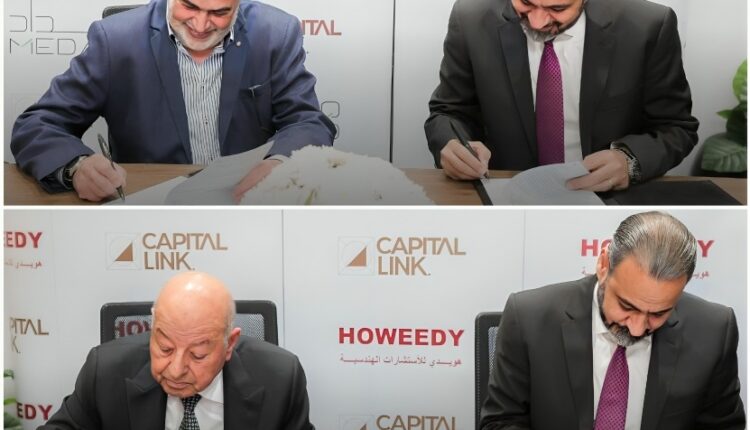 ووقع التعاقد كل من أشرف بديع، ممثل رئيس مجلس إدارة شركة كابيتال لينك للتطوير العقاري، والمهندس حسين أسعد، رئيس مكتب مداد، و استاذ دكتور محمد فائق هويدي ، رئيس مجلس إدارة مكتب هويدي للاستشارات الهندسية، وذلك بحضور عدد من اعضاء مجلس الادارة بالشركات.