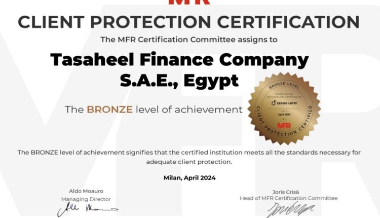 وحصلت شركة تساهيل على شهادة حماية العميل MFR التي يتم إدارتها طبقًا لإطار Cerise+SPTF، تقديرًا لالتزامها الثابت بحماية العملاء وتطبيق أفضل الممارسات الأخلاقية والمهنية داخل منظومة التمويل الشامل، ومن خلال تطبيقها للمعايير العالمية للتمويل، تلتزم تساهيل للتمويل بالمعاملة العادلة وحماية عملائها من أي أضرار وفقا لمبادئ التمويل المسئول الدولية التي ترتكز علي التصميم المناسب للمنتج وقنوات التوزيع , حماية العملاء من الافراط في الدين , الشفافية , التسعير المسئول , العدالة والاحترام في معاملة العملاء , خصوصية وسرية البيانات , آلية تسوية الشكاوي , الالتزام علي مستوي الحوكمة والموارد البشرية بحماية العملاء ، وهو ما يعزز التزامها بالتمويل المسئول في السوق المصري.