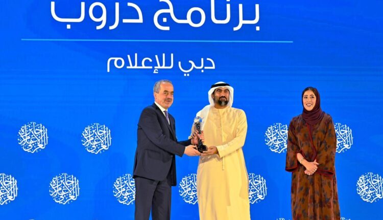 وكانت “دبي للإعلام” قد تُوجت ضمن الدورة الـ 23 من جوائز الإعلام العربية التي نظمها نادي دبي للصحافة، ممثل الأمانة العامة للجائزة، بالتزامن مع الدورة الـ 22 من منتدى الإعلام العربي الذي اختتم مؤخراً في مركز دبي التجاري العالمي، بجائزة أفضل برنامج ثقافي، استحقها برنامج “دروب” الذي يقدمه الإعلامي علي آل سلوم، وذلك بفضل تفرد رسالته وتنوع أسلوبه وقدرته على مد جسور التواصل والتعارف بين الثقافات. وكان البرنامج قد حقق مشاهدات واسعة خلال عرضه على شاشتي تلفزيون دبي وقناة سما دبي أثناء الموسم رمضان الماضي.