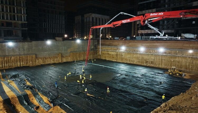 كما قامت MODAD بالانتهاء من صب القواعد الخرسانية وفقًا للجدول الزمني المحدد، حيث تسعى الشركة حاليًا إلى إتمام 40% من أعمال الخرسانات الخاصة بمبنى سيكتور 1 بما في ذلك الأساسات والأعمدة والحوائط الساندة بحلول نهاية العام الجاري.