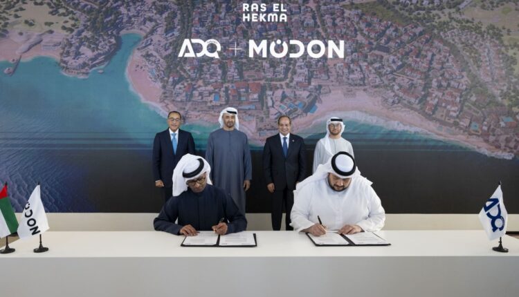 بحضور صاحب السمو الشيخ محمد بن زايد آل نهيان رئيس الدولة حفظه الله وفخامة الرئيس عبد الفتاح السيسي رئيس جمهورية مصر العربية الشقيقة، أعلنت القابضة (ADQ)، الشركة الاستثمارية القابضة التابعة لحكومة أبوظبي، تعيين مجموعة “مُدن القابضة” الإماراتية، المدرجة في سوق أبوظبي للأوراق المالية تحت الرمز: MODON، مطوراً رئيسياً لمشروع رأس الحكمة على الساحل الشمالي لجمهورية مصر العربية.