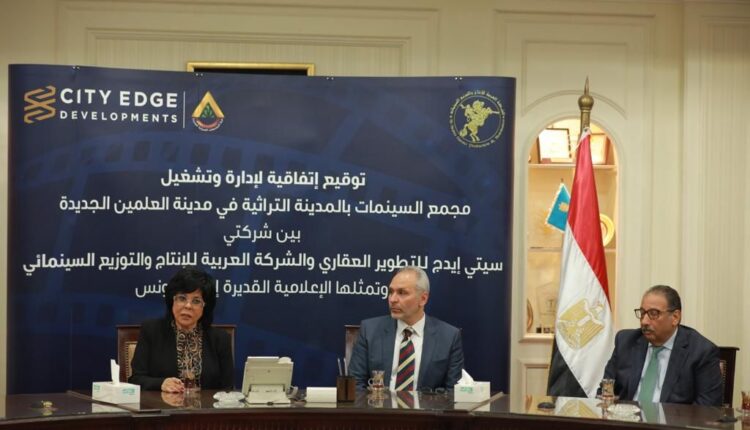 قامت اليوم شركة سيتي ايدج للتطوير العقاري بتوقيع عقد مع الشركة العربية للإنتاج و التوزيع السينمائي، الذي يتم بمقتضاه اتفاقية لإدارة و تشغيل مجمع السينمات بالمدينة التراثية بمدينة العلمين الجديدة و ذلك ضمن خطة تطوير الخدمات الترفيهية بالعلمين الجديدة، بمقر الوزارة.